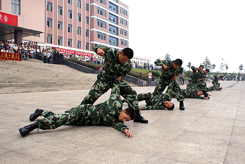 娄底武警官兵表演擒拿术