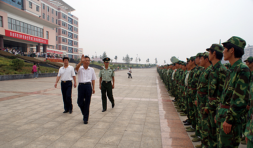 党委书记陈立楚等领导检阅军训队伍