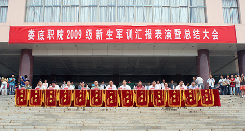 薄雾弥漫,晨曦微露,9月17日,我院2009级3000余名新生列队齐聚校园文化广场,为期12天的军训生涯在今天进行成果验收。全体院领导、各教学系部主要负责人及武警娄底支队相关领导出席军训汇报表演暨总结大会,副院长刘自斌主持。