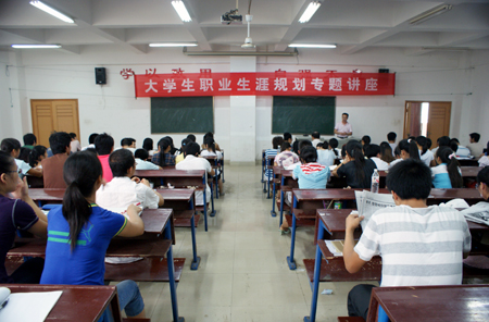 在谈到职业的规划性时,熊苹则从长期性、清晰性、可行性与挑战性四个方面展开。熊苹表示,面对自己的未来,目标不一定要高远,但是一定要清晰。“要注意自我评估,特别是职业生涯评估。”熊苹指出,在进行职业生涯规划时还要以政治、经济和社会影响为前提,牢记对人的忠诚、对家的忠诚与对祖国的忠诚。饱含关爱的言辞再一次将整个讲座气氛推向高潮。