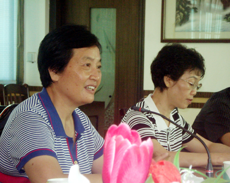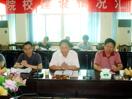 永州职院党委书记刘子秀(左一)介绍情况