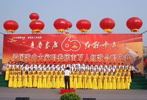 秋风送爽,红心激荡,9月24日,“爱国歌曲大家唱”娄底市万人红歌合唱比赛在娄星广场火热举行。我院组织代表队积极参赛,高唱红色经典歌曲,在这金秋季节,以一份炽热的爱国之心献礼祖国60华诞。
