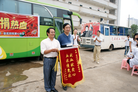 9月27日,由继续教育部、院团委、爱心协会主办的“迎国庆、献爱心、捐热血”活动在院篮球场举行。继续教育部部长朱存斋、市中心血站站长胡毅参加仪式并讲话,继续教育部100余名师生参加了仪式并踊跃献血。中心血站向我院继续教育部赠送“献血献爱心,血浓情更浓”的锦旗。献血车在我院停留了一日,我院其他系部同学也参与到了献血队伍之中。这一活动为我院迎接建国六十周年,以实际行动服务社会、奉献爱心书写了绚丽的一笔。(刘艳)