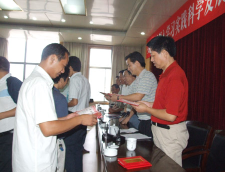 院长杜祥培发表讲话,指出科学发展观活动的开展,给学院提供了一个好的平台和机会,学院各方面事业取得了较大的发展。我们要以此为契机,将取得的成果转化为下一步发展的坚实基础和强大动力,以全新的姿态迎接祖国六十周年华诞。(欧阳琦)