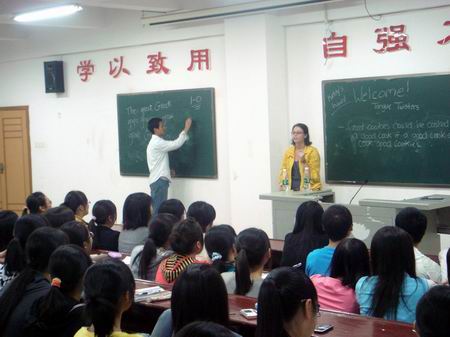 10月15日晚7:00,外语系外教Tony和Kirby在主教学楼510室为口语协会作了“大声说英语”讲座。