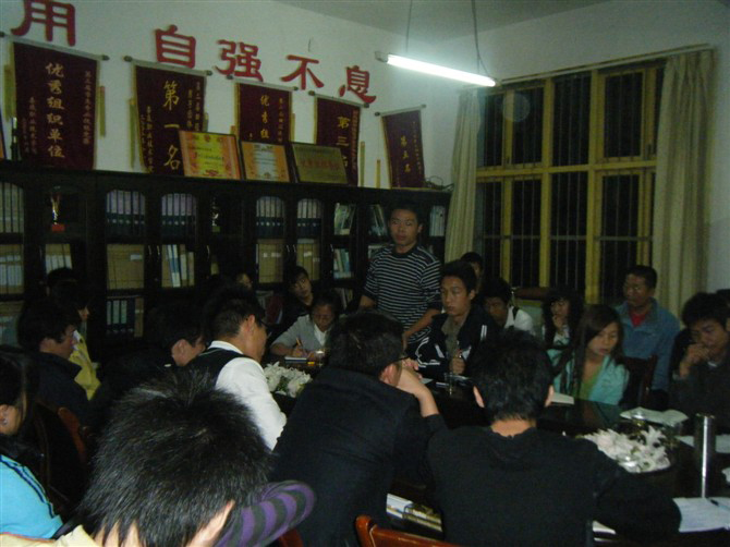 在为时两小时的会议中,大家认真地听取了学长的建议和忠告以及曾主任对干部们的建议和要求,明确了自己所承担的责任。会议在一片热烈的掌声中结束。(朱凤)
