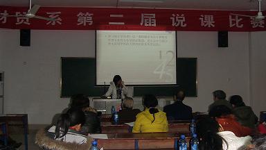 为促进教师深入研究课程教学,强化教学设计能力,促进课程改革与教学方法、手段的改进,加强教师之间的相互交流与学习,达到提高教学质量的目的,11月15日晚,财经贸易系在主教学楼218教室举办了2009年度教师说课比赛,院督导团曾慰南、陆运夫、谢若松、沈名长、陈福梅等老领导担任此次比赛的评委。