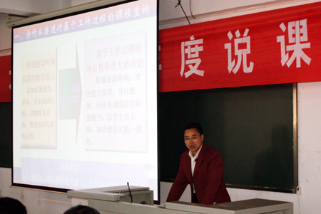 赛后,教务处处长易爱良对比赛作了点评。他指出,纵观此次比赛,选手们的成功之处主要体现在以下两个方面:一是说课内容内涵丰富。即大部分选手均能遵循“基于工作过程导向”、“市场需求为导向”、“能力本位”等先进的课程设计理念;教学目标定位准确;能娴熟地运用项目教学、任务引领教学单元等体现高职教学规律的教学方法,多媒体教学、教学资源网站建设、在线答疑等现代化教学手段得到充分利用。二是选手们的说课很有表现力,课件的制作十分精美,选手们的语言表达清晰、自信、富有激情,感染力强。