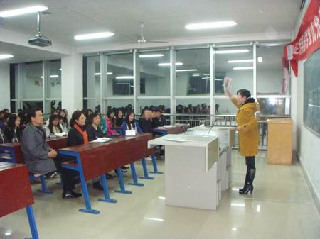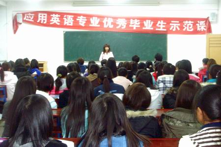 为给应用英语教育专业的学生树立良好的学习榜样和信心,使同学们尽早规划职业生涯,明确努力方向,11月23日晚,外语系邀请了现就职于小星星教育集团的05级三位优秀毕业生在主教学楼615教室上示范课。院长杜祥培、外语系主任刘燕、学工副主任贺建良、教学副主任邓海燕、学工干事及辅导员出席,09级应用英语教育专业的全体学生、07级和08级部分学生参与听课。