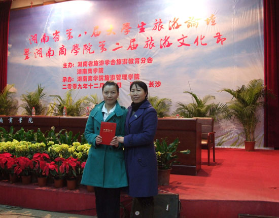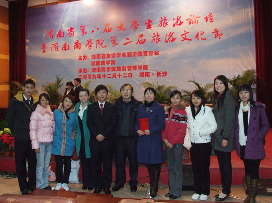 12月12日,湖南省第八届大学生旅游论坛情景模拟导游大赛在湖南商学院举行。由我院公管系主任雷晚蓉、老师邱智鸿带队,尹丽辉等8位同学组成的参赛团队,在情景模拟导游大赛中充分发扬不怕困难、勇于拼搏的精神,最终夺得大赛特等奖。这是我院旅游管理专业学生首次参加省级情景模拟导游大赛并创造佳绩。(罗华 龙建清)