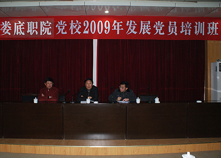 12月22日,我院2009年发展党员培训班在主教楼报告厅开班。近两个小时的时间里,来自我院各系部的234名党员发展对象齐聚一堂,认真聆听了党委书记陈立楚及纪委书记邹松建朴实而又深刻的党课。组织人事处处长李新红、组织科科长封权初、组织科干事谢丽珍及各系部主要负责人也听取了党课。党课培训活动由党委副书记欧友佳主持。