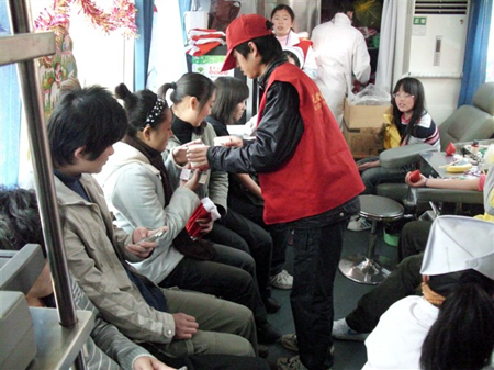 12月23、24、25日,由院团委主办的“温暖冬日 全赖您的爱心相伴”圣诞无偿献血活动在学生寝室区举行,在浓浓的圣诞快乐气氛中,我院同学积极地参加了这次无偿献血活动。采血车上弥漫了爱,车上虽然拥挤但不见同学们怕麻烦,在车下耐心等待着。三天时间全院学生共献血11100ml。其中我院学生组成的服务队以热情的服务得到了同学们的广泛称赞。 (杨理想)