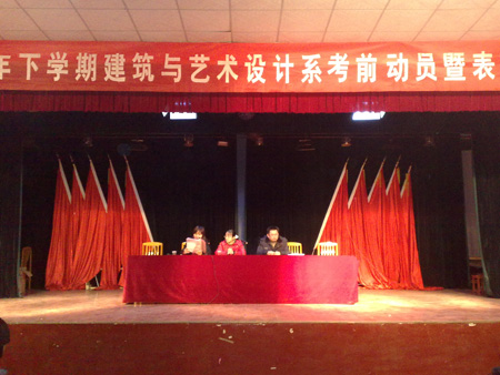 12月30日晚,建艺系在南苑礼堂召开考前动员暨表彰大会。出席大会的有建艺系系主任夏高彦、教学副主任李清奇和学工副主任曾素纯。大会由夏高彦主持。