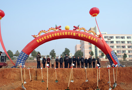 1月12日上午,我院现代农业新技术推广培训中心奠基仪式在学院广场东侧举行。娄底市副市长鄢福初,市政府副秘书长梁克和,市委组织部、市第一工程有限公司的领导和我院全体院领导出席,全院中层干部参加了仪式。仪式由副院长颜彩飞主持。