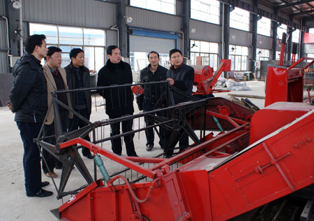 杨云辉一一查看了陈设在我院实训中心内,由湘丰公司生产的各项农机产品,并询问了每项产品的适用情况和产量、销路。陪同人员一一作了回答。杨云辉说,自己是农民出身,对农村的各项事业都充满了兴趣,娄底职院的产学研合作紧扣住了本地农村的发展需求,很有价值。当他听到湘丰公司生产的小型收割机的设计都有职院教师参与研发,生产过程有职院学生参与,生产的产品已经列入了国家和省级的农机产品补贴目录时,杨云辉连连点头,表示肯定。