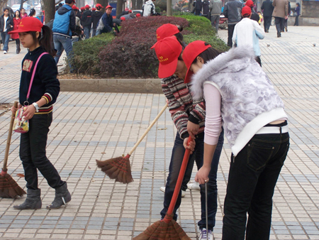 在院团委书记杨惠梅、副书记欧芳的组织下,我院100余名青年志愿者参加了此次活动。我院选送的由公管系学生排练的《梦非梦》、《如火的青春》等歌舞节目在娄星广场参加了义演,还有一部分青年志愿者来到九龙商贸城地段,进行街道垃圾清扫、站牌清洁、交通协管等工作。青年志愿者们表示:今天的活动很有意义,大家不仅学习了雷锋精神,也尽了一名大学生对社会的义务。(车颖 许恒)