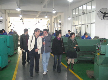 为了进一步探索在高职院校中高素质高技能人才的培养模式,提高机电系订单模式办学质量,进一步完善订单培养模式,3月16日,机电系主任张海筹、副主任刘梅秋及模具和数控教研室主任等一行人到株洲职业技术学院进行了参观、学习和交流活动。在本次交流活动中,株洲职院及华大菁英教育的老师们就模具订单培养中的师资队伍建设、课程结构模块、课程建设、教学组织形式、考核形式等做了详细的介绍,并深入实习工厂了解学生金工实习情况,在课堂上与老师和同学做了深入交流,还就本系订单培养模式中存在的问题进行了仔细探讨与交流。