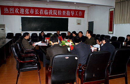 3月22日,娄底市委副书记、市长张硕辅莅临我院,在认真听取了院长杜祥培的工作汇报后,对我院特色办学成果极为赞赏,并针对娄底市发展规划,对我院的发展思路与方向提出了良好建议。汇报会由我院党委书记陈立楚主持,全体院领导出席。