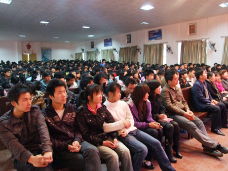 4月13日下午,由学工处、院团委主办的2010年度学生先进典型事迹报告会在南苑礼堂举行首场演讲,四名“自强之星”得主和“十佳文明标兵”代表、院级优秀学生干部在会上发言,党委书记陈立楚、学工处处长刘罗仁、团委书记杨惠梅、电信系师生500余人共同聆听了本次报告会。