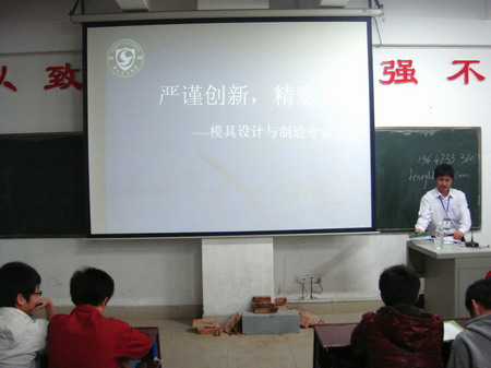 4月23日下午,机电工程系主办的模具专业知识讲座在主教学楼110教室举行。来自华大菁英集团的教学副总谭总、教学主管杨女士及模具设计与制造专业骨干教师尹老师作为特邀嘉宾出席本次讲座。机电系学工副主任朱勇志,教学干事欧阳梅老师,辅导员张翠娟老师、唐明月老师,08、09级模具订单班的所有学生参加了本次活动。