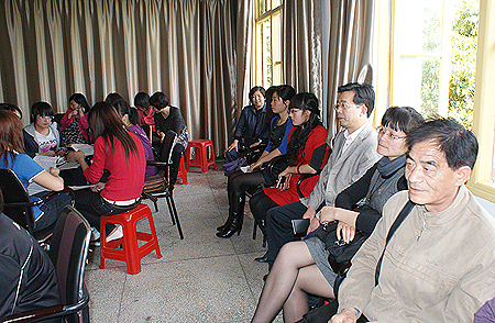 “请大家围成一圈,然后开始自我介绍,介绍自己的名字、来自哪里、爱好是什么等等。请关注你左手边的人的自我介绍,等第一轮自我介绍结束后,每个人都要依次介绍自己左手边的人。”在介绍了第一个程序后,咨询师张岸首先做了自我介绍。