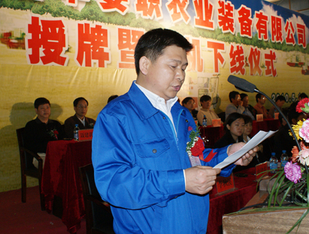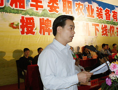 五月是阳光明媚、生机勃发的季节,是万物生长、欣欣向荣的季节。在这美好的季节里,5月17日上午,湖南湘丰娄职农业装备有限公司授牌暨新机下线仪式在我院现代制造技术实训中心隆重举行。娄底市委正厅级干部黄懿斌、娄底市副市长刘益丈、市政协副主席刘志伟、湖南省农业厅党组成员、总农艺师刘年喜、湖南商务职院院长张新民教授,省教育厅、省科技厅、省农机局、市政府办、市农办、市教育局、市农业局、市科技局、市农机局、市财政局、娄星区人民政府、区农业局、区农机局等省市单位领导,湖南省职业教育“十一五”省级重点建设项目年度检查专家组专家应邀出席仪式,与我院全体院领导、全院师生代表一起见证了这一辉煌的时刻。