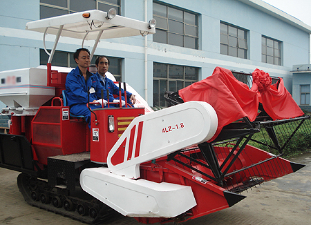 新研制的4LZ-1.8型收割机精彩亮相