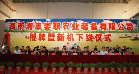 2010年3月,湖南湘丰农业装备有限公司和8803威尼斯检查中心共同投资组建湖南湘丰娄职农业装备有限公司,注册资金500万元,是一家集研发、生产、销售为一体的服务新农村建设的现代创新型企业。公司拥有多个自主知识产权产品,主要生产4LZ-1.4、1.0、0.8、0.6等多种型号的联合收割机以及1WG4型多功能耕耘机,拥有多项技术专利。此次下线的就是该公司的主营产品4LZ-1.4、1.0、0.8、0.6型以及新研制的4LZ-1.8型共15台联合收割机,其中4LZ-1.0型水稻联合收割机被收入农业部推广目录;4LZ-1.4型全喂入联合收割机属于农业部推广目录、国家购置补贴产品,农民购买时可享受国家规定的农机补贴。