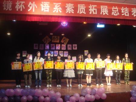 5月18日晚上7点,外语系“东方眼镜杯”素质拓展表彰晚会在南苑礼堂隆重举行。出席晚会的有院团委书记杨惠梅、外语系主任刘燕、学工副主任贺建良、团总支书记陈秀丽、所有辅导员及赞助商,晚会还特邀兄弟系部的学生会主席观看并进行了交流。