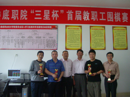 为了弘扬中华民族传统文化,丰富教职工文娱生活,学院工会于6月2日至5日组织了“三星杯”首届教职工围棋赛,共有十六名选手报名参赛。本次比赛由娄底市三星集团建筑安装公司赞助。经过四天紧张的角逐,公管系邹慧鹏老师荣获第一名,电信系辜纯建、王望贤两位老师分别获第二名和第三名,工会主席曾国基也积极参赛,获得第四名。院党委副书记欧友佳同志出席了闭幕式并为获奖选手颁奖。(彭蔚英)