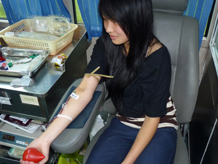 献血现场,前来咨询、献血的同学络绎不绝,小小的献血车里,洋溢着爱的氛围。爱心志愿者,财贸系09金融管理班苏雪萍在接受采访中谈到:作为一名当代大学生,我们更应该勇于担当社会责任,积极参加公益活动,做一名优秀的社会公民。