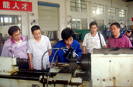 在我院机电系主任张海筹陪同下,李浩一行参观了学员学习场所、实训工厂、宿舍等地,了解了该校五名学员的食宿情况,“天气热,一定要注意降温防暑。”李浩对学员的饮食起居很是关心。