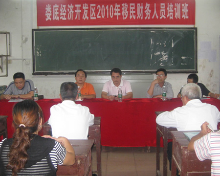 9月4日上午,娄底市经济开发区2010年移民村财务管理培训班在我院开班,市经济开发区移民办主任周轶群、大埠桥办事处副主任吴得胜和涟滨办事处等单位移民站负责同志、我院农林工程系主任李九如、任课教师及培训班全体学员参加了开学典礼。仪式由开发区移民办戴伟建同志主持。