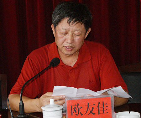 欧友佳宣读表彰决定