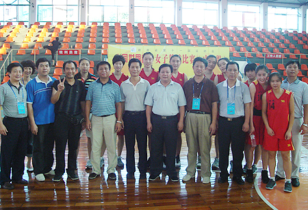 副市长鄢福初及市体育局等单位领导、我院领导与女篮队员合影