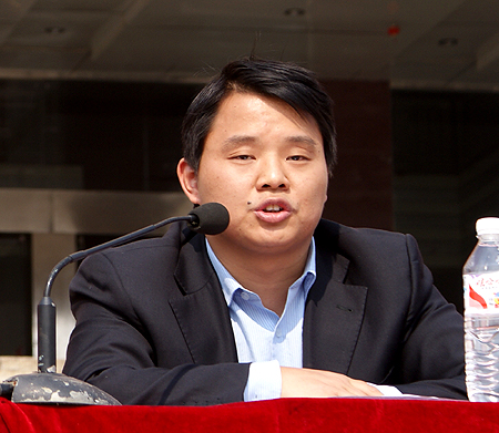 朱石牛发表讲话。他代表团市委对关心和支持共青团工作的我院领导表示了真诚的感谢,同时希望学员们能高举旗帜,坚定信念;加强学习,提高本领;投身实践,奉献社会。