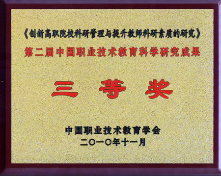 会上宣读了中国职业技术教育学会《关于颁发第二届中国职业技术教育科学研究成果奖的决定》,在总结2006年开展首届职教科研成果奖的基础上,今年又开展了第二届天煌杯职教科研成果奖活动,共评出一等奖10个,二等奖29个,三等奖50个。湖南省共有6项成果获奖,省教育厅系统获奖4项、高职院校仅2所学院获奖。我院徐元俊副研究员申报的《创新高职院校科研管理与提升教师科研素质的研究》获三等奖,并应邀出席了学术年会暨颁奖大会。(高职教育研究所)