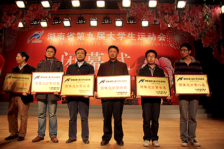 11月22日,前后历时81天的湖南省第九届大学生运动会在中南林业科技大学顺利落下帷幕。我院代表团在本届大运会中勇夺5金5银7铜,于高职专科组中团体总分升至第六。我院党委副书记欧友佳亲临颁奖现场,捧回了“优秀体育代表团”、高职专科组“团体总分第六名”的荣誉奖牌。