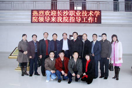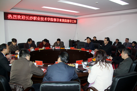 12月2日,长沙职业技术学院院长刘国华、副院长李晖率领该院办公室、教务处及教学系部负责人来院交流工作,我院院领导陈立楚、杜祥培、袁其谦与院对口部门负责人参加了在综合楼会议室举行的交流会。