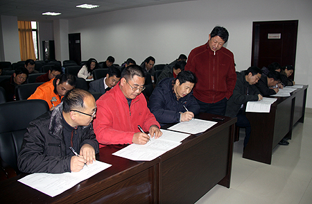 我院为配合此次考试,特实行集中统一考试方式、独立作答。试卷满分为100分,考试时间为120分钟,由市委建设学习型党组织工作领导小组办公室统一出题、统一组织阅卷,成绩在一定范围内进行公开。