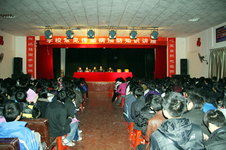 讲座主讲人刘金涛首先从传染病防治的基础知识开始讲起,再分别从传染病的概念与流行病的区别,传染病流行的基本条件,传染病的防治等几个方面做了详细的讲解。并提出同学们在生活应注意的传染病防范小常识。刘金涛在讲座中重点提到了艾滋病防治的基本知识以及艾滋病的传播途径和防治措施,并希望同学们在面对艾滋病感染者时应给予关心、鼓励和帮助。