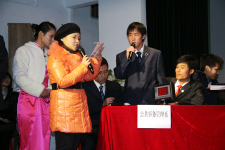 经过激烈的角逐。最终公共事务管理系代表队以总分210分的最高分获得了本次百科知识竞赛的一等奖。建筑与艺术设计系、农林工程系获得了二等奖。资源工程系,外语系和财经贸易系获得了三等奖。继续教育部,机电工程系,电子信息工程系获得了优胜奖。与会领导为他们颁发了锦旗。(许恒)