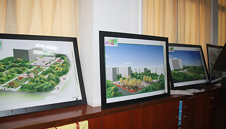三家投标单位按序演示了自己的设计方案。湖南省园林建设有限公司“校园与观赏植物园合一,景观展示与人文、艺术、科教、生态、保健功能并举”的设计理念,“教学行政区、科研实训区、体育运动区、学生生活区、教师生活区”的功能分区,“校史广场、百家讲坛、励志广场、书山园”等主题园林广场设计,尤其是“学海湖”引入稻田的梯田景观设计令人叹服,得到大众评委的一致认可。