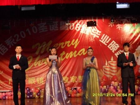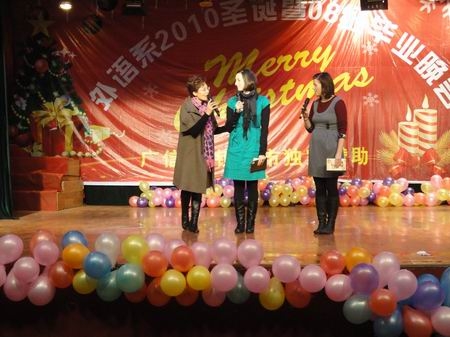 12月24日晚7:00,由外语系倾心策划的2010年圣诞晚会暨08级毕业晚会在南苑礼堂隆重上演。出席晚会的有党委副书记欧友佳、副院长刘自斌、纪委书记邹松建、督导团和各部门负责人及外语系全体师生。此外,娄底市人事局、教育局、公安局、外专局、娄底日报、娄底公共频道的相关领导和记者也应邀观看了演出。
