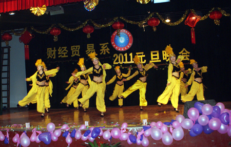 1月4日晚,财经贸易系在南院礼堂迎来了每年一度的元旦晚会。党委副书记欧友佳、副院长刘自斌、纪委书记邹松建、院调研员李天仁、团委书记杨慧梅、财经贸易系党支部书记、主任朱岳坤、副主任朱阳生、张一军及娄底丽人医院领导王凡、杨涵以及全系师生观看了晚会。