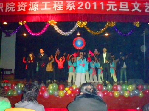 玉兔迎春到,红梅祝福来。在这辞旧迎新之际,资源工程系于1月5日晚7点半在南院礼堂举行了元旦晚会。学工处资助中心罗丽萍主任、李社林老师、资源工程系全体领导和老师出席并观看了演出。