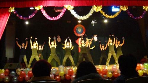 红红火火迎新年,欢欢喜喜过元旦。伴随着华丽的烟花,一场《开门红》舞蹈拉开了此次晚会的序幕,在资源系主任胡治民致新年贺词后,晚会正式开始。铿锵有力,精彩绝伦的武术《双截棍》,幽默搞笑,富有深意的相声《白吃》,婀娜多姿的瑜伽,振奋人心的诗歌朗诵《少年中国说》,还有李明杰老师深情独唱的《游戏人间》,强身健体、青春活力的搏击操,舞动青春激情的《change》,独领风骚、轰动全场的T台秀,轻柔华美的扇子舞《菊花台》……诸多节目给全场观众献上了一场场视觉盛宴,同时下面掌声也是一波未平一波又起,大家激情澎湃、笑声不断。最后由石老师带领所用演员演唱了一曲令人回味,温馨的《相亲相爱的一家人》拉下了此次晚会的帷幕。(于继刚)