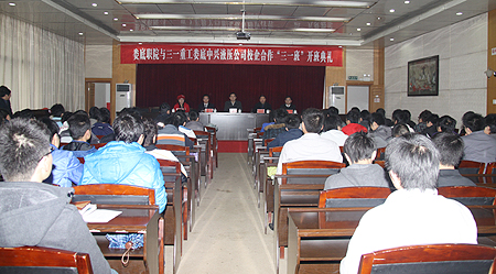 3月10日上午在主教学楼多功能报告厅,我院与三一重工娄底中兴液压公司联合举办的“三一班”开班。院长杜祥培、副院长袁其谦、副院长郭广军、三一重工娄底中兴液压公司总经理助理肖华安、人力资源部副部长陈娟出席开班仪式,袁其谦主持仪式,杜祥培、郭广军、肖华安分别致辞,教师代表许红建、学生代表严佳作表态发言,教务处处长胡拥军、校企合作办主任王威然、招生就业处副处长王少英、机电系主任张海筹、党总支书记陈育新及教研室主任、任课教师、三一班全体学员参加了典礼。