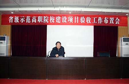 3月24日,我院在多功能报告厅召开省级示范高职院校建设项目验收工作布置会,明确目标任务,责任落实到人,将进入倒计时的验收各项工作完成的时间节点进行了具体安排,全力以赴确保省级示范建设项目验收顺利通过。学院全体院领导及副科以上干部参加会议,大会由副院长郭广军主持。