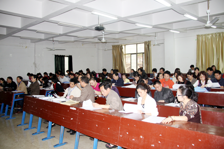 4月15日下午,我院在主教学楼110教室组织召开了2011年单独招生考试本院考点监考人员考前培训会。院长杜祥培、副院长袁其谦出席培训大会,考试工作组组长胡拥军、朱存斋、陈晶玉、杨惠梅、曾华以及教务处相关工作人员、院内各考场监考人员参加了大会。会议由教务处处长胡拥军主持。